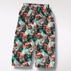 Y2K Boca Bay Tropical Floral Wide Leg Lounge Pants Elastic Waist Petite Medium
