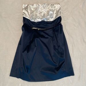 Y2K- Body Central Strapless Dress- Frilly White & Navy with Pockets- Size M- NWT