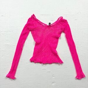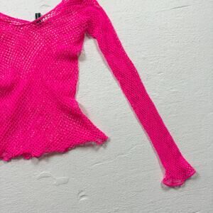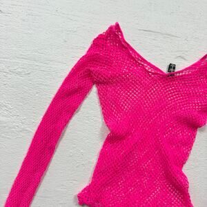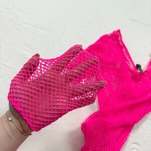 Y2K BodyRage Neon Pink Fishnet Long Sleeve Top, One Size