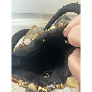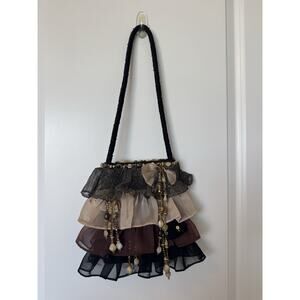 Y2K Boho Beaded Ruffle Purse Brown Black Tulle Boho Mini Bag VTG Indie Sleaze