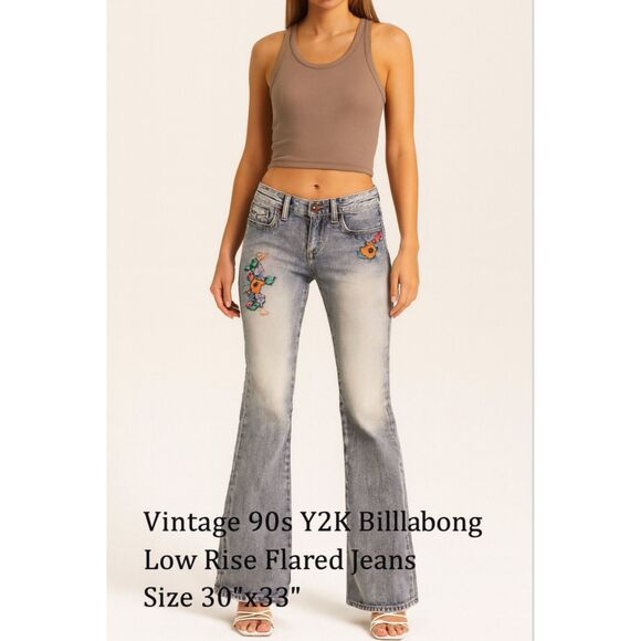 Y2K Boho Billabong Low Rise Embroidered Jeans VTG 90s Flared Light Wash 30x33