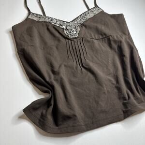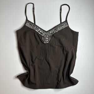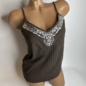 Y2K Boho Festival Brown Beaded Sequin Cami Top M Party Embellished