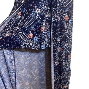 Y2K Boho Floral Maxi Romper Crisscross Top Split Skirt Overlay NoBo XL Shorts
