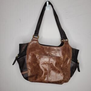 Y2K Boho Chic Hobo Brown Shoulder Bag Purse Stitching Detail Distressed Metallic the Sak