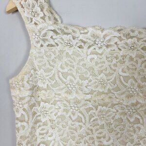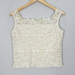 Y2K Boho Stretch Nylon Lace Tank Top Ivory Retro Cottage Size Large Women's