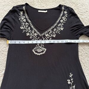 Y2K Boho Vintage Bell Long Sleeve Black Embroidered Dress Tunic Size Medium