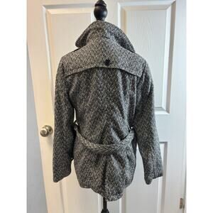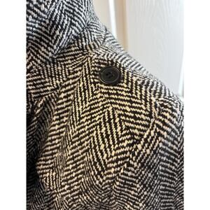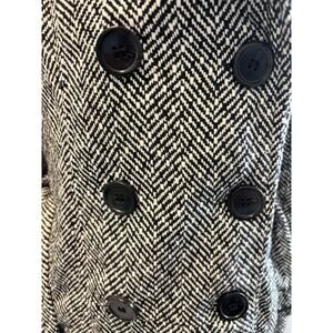 The Y2K Bongo Black and White Coat in Medium size is a stylish and versatile outerwear piece for women. Made from polyester, this pea coat features a classic black color with a touch of white, adding a colorful and unique twist to the traditional style. Perfect for adding a pop of color to any outfit, this coat is a must-have for those looking to make a fashion statement.