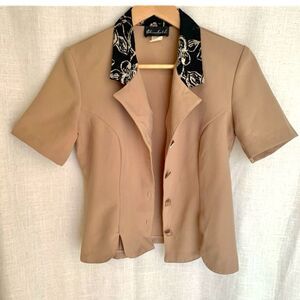 Own the room in this vintage Elisabeth short sleeve blazer, featuring bold square button closures, a sharp tailored silhouette, and that unmistakable ‘90s-to-Y2K boss energy. The neutral tan colorway is effortlessly elevated with structured shoulders, subtle princess seams, and a bold contrasting collar in black floral — the kind of detail that instantly gives luxury drama.