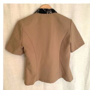 Y2K Power Blazer Womens 8 Short Sleeve Neutral Tan Square Buttons Elisabeth USA