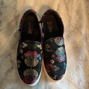 Size 6 multi colored brash slip on sneakers