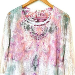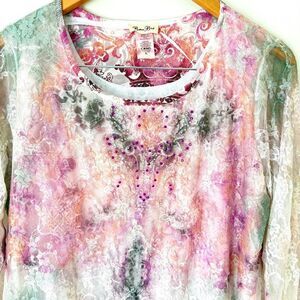 Y2K Brittany Black Pastel Floral Lace Overlay Top Size PL Fairy Whimsical