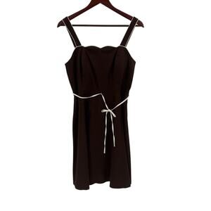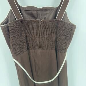 Y2K Brown Cotton Mini Dress Square Neck Smocked Back with Tie Belt Size 12P