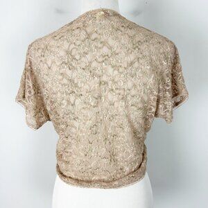 Y2K Brown Lace Cropped Top Sheer Mesh Fairy Romantic Size Large Women's