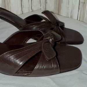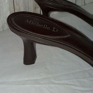 Michelle D is a late-90s/early-2000s label known for its Brazilian-crafted leather heels and minimalist silhouettes. This pair captures the Y2K aesthetic perfectly — square-toe design, knotted detail, and a sleek mid-heel style that transitions from office to evening.