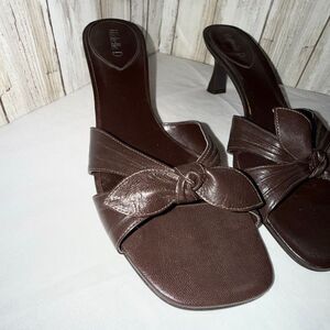 Y2K Brown Leather Square-Toe Heeled Mules | Michelle D Brazil | Knotted Slip-On