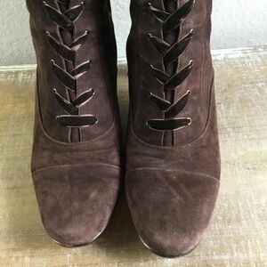 Y2K Brown Suede Renaissance Fair Fantasy Fairycore Lace Up Heeled Boots 9M