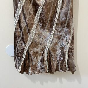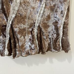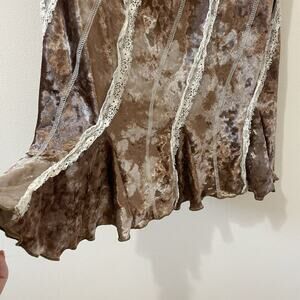 Y2K Brown Velvet Cream Lace Ruffled Spaghetti Strap Mini Dress Fairy Grunge XL