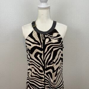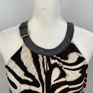 Y2K Brown Zebra Print Flowy Leather Buckle Halter Neck Maxi Dress