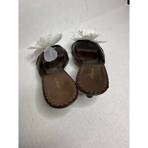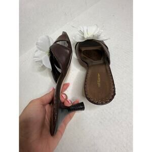 Y2K Brown and White Handcrafted Floral Open Toe Kitten Heels Womens Size 6
