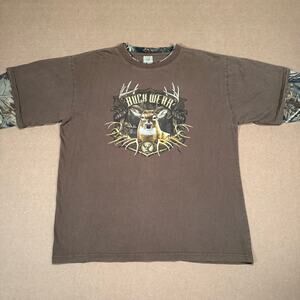 Y2K Buck Wear Deer Hunting Shirt XL Brown Camo Long Sleeve Double Layer Outdoors