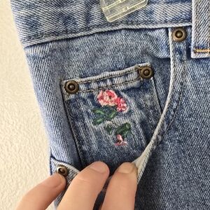 Y2K Bugle Boy Tapered Leg Slim Fit Floral Embroidered Jeans Size 10 High Rise