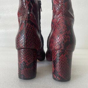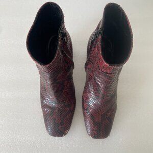 Y2K Burgundy Python Print Ankle Boots SZ 36.5