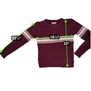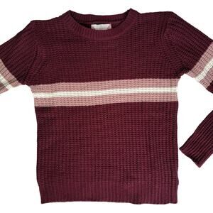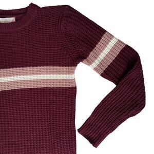 Y2K Burgundy Waffle Knit Sweater Women's Medium Stripe Detail Preppy Academia