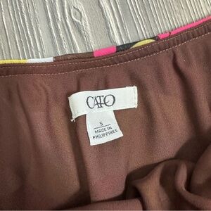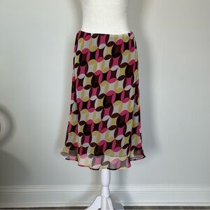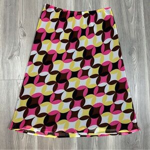 Ships fast from North Carolina! Vibrant with pink, yellow, brown, and white geometric print, this CATO Y2K midi skirt is perfect for European summer trips, spring picnics, or retro festival styling. A comfy elastic waist makes it easy to wear all season.