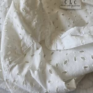 Y2K CLC White Cotton Eyelet Lace Shirt Button-Up Academia Resort Office Top Sz L