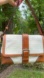 in flawless condition- no signs of wear on or inside purse. White and Brown leather with nickel silvertone hardware and adjustable strap. Flap closure has easy magnetic snap. Large slip compartment with snap closure on back outside of purse. Inside the purse are two open compartments and one large zipper pocket. Signature leather COACH hangtag.