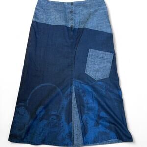 Y2K COP. COPINE PARIS GRAPHIC DENIM MID SKIRT SIZE SMALL.