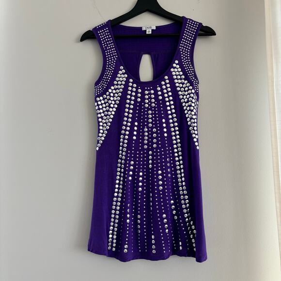 fun silver studded tank with keyhole back in deep purple color. in great preloved condition.