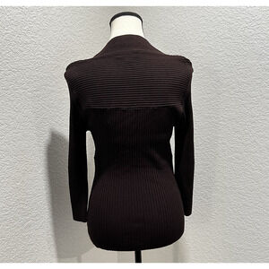 Y2K Cache Brown Ribbed Sweetheart Top Stretchy Knit Rhinestones Size Large long sleeve
