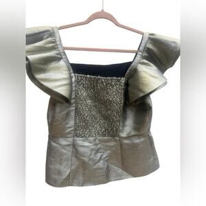 Y2K Cache Gold Metallic Fairy Glam Party Smocked Back Babydoll Top Large Fairy