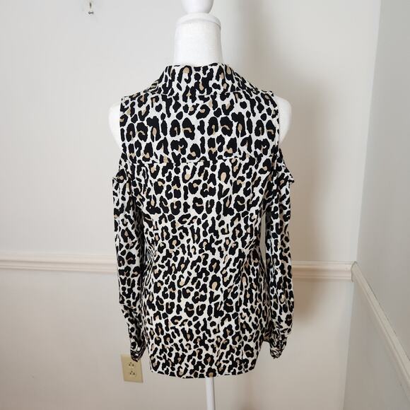 Y2K Cache Shirt Size Small Womens Animal Leopard Top Cutout Shoulder Buttonup