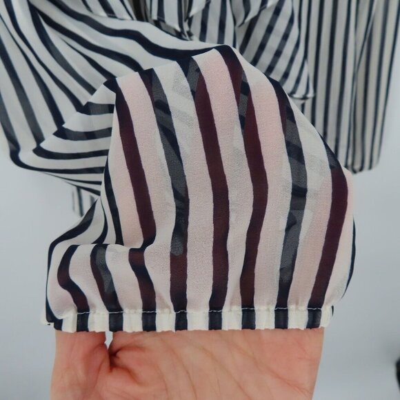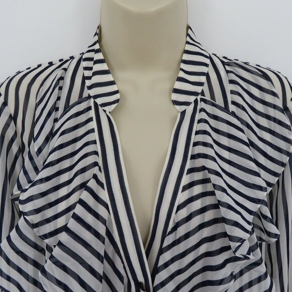 Y2K Cache Women 6 Sheer Ruffle Blue White Stripe Button Blouse Shirt Top NEW