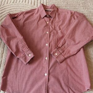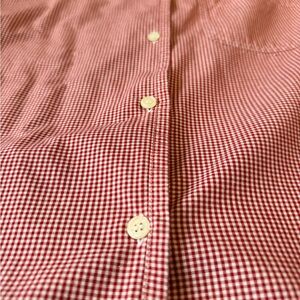 Generously cut Medium would also fit L or XL (see dimensions in photo) Classic and timeless red and white micro check pattern woven into durable Oxford cloth.