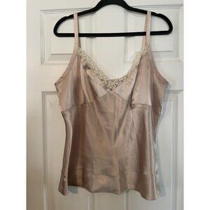 Y2K Cami Tank Top Smooth Satin Lace Baby Doll XL CHAMPAGNE George