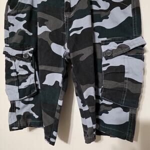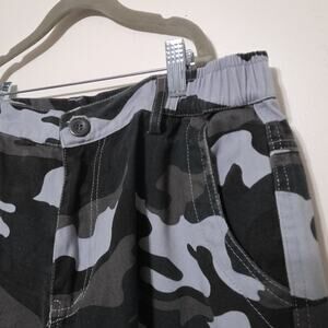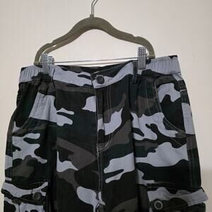 Y2K Camo Cargo Shorts Mens 32 Gray Retro Gorpcore Baggy Skater Pockets Elastic
