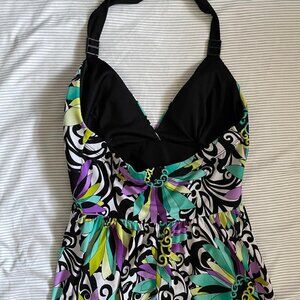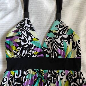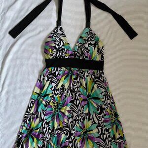 Cute and super cozy; perfect for a night out. Dress has bra cups sewn in and the halter tie can be adjusted to your liking