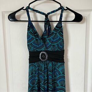 Y2K Candies Blue and Black Patterned Jeweled Mini Racerback Club Summer Dress