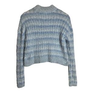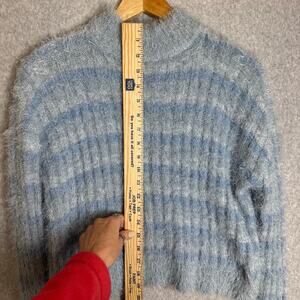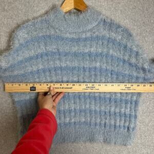 Y2K Candies Eyelash Sweater Women’s Small Stretch Mock Neck Blue Striped Cozy