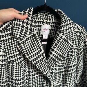 Y2K Candie's Pea Coat Women's Size Small Houndstooth Black White Pleated Twee