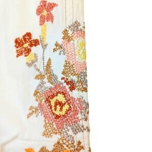 Y2K Capris Women's Sz 3 Ivory Cross Stitch Hand Enbroidered Floral Boho Festival
