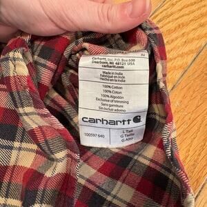 Y2K Carhartt Button Down Red Plaid Cotton Flannel Shirt Size Large Tall