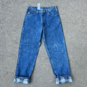Y2K Carhartt Flannel Plaid Lined Relaxed Fit Straight Leg Jeans 34x34 B172 DST
