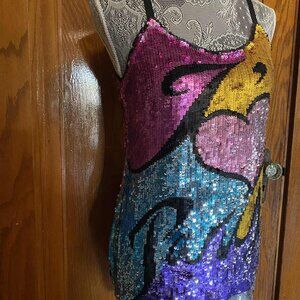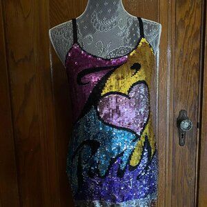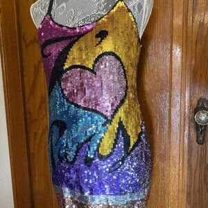 Stunning Y2K Catherine Malandrino "I Heart Paris" Mini Sequin Dress ! incredible dress! the all over sequins are to die for. this is definitely a statement making dress! Size 4