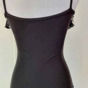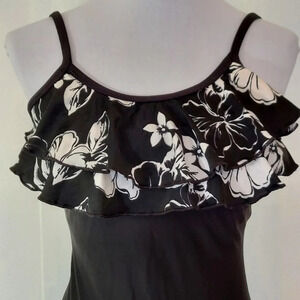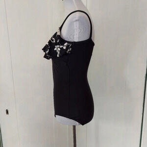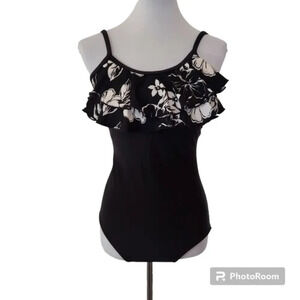 Y2K Ceeb Black White One Piece Floral Ruffled Neck Spaghetti Strap Swimsuit