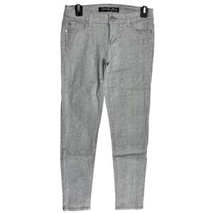 Y2K Celebrity Pink Skinny Jeans Size 3 Gray White Snakeskin Pattern Low Rise