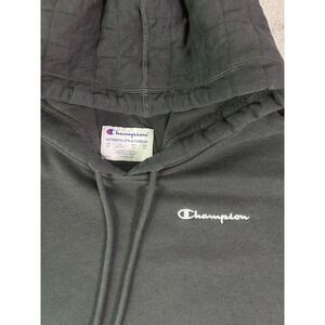 Y2K Champion Waffle Sleeve Hoodie Black 2XL Embroidered Small Spellout Logo
